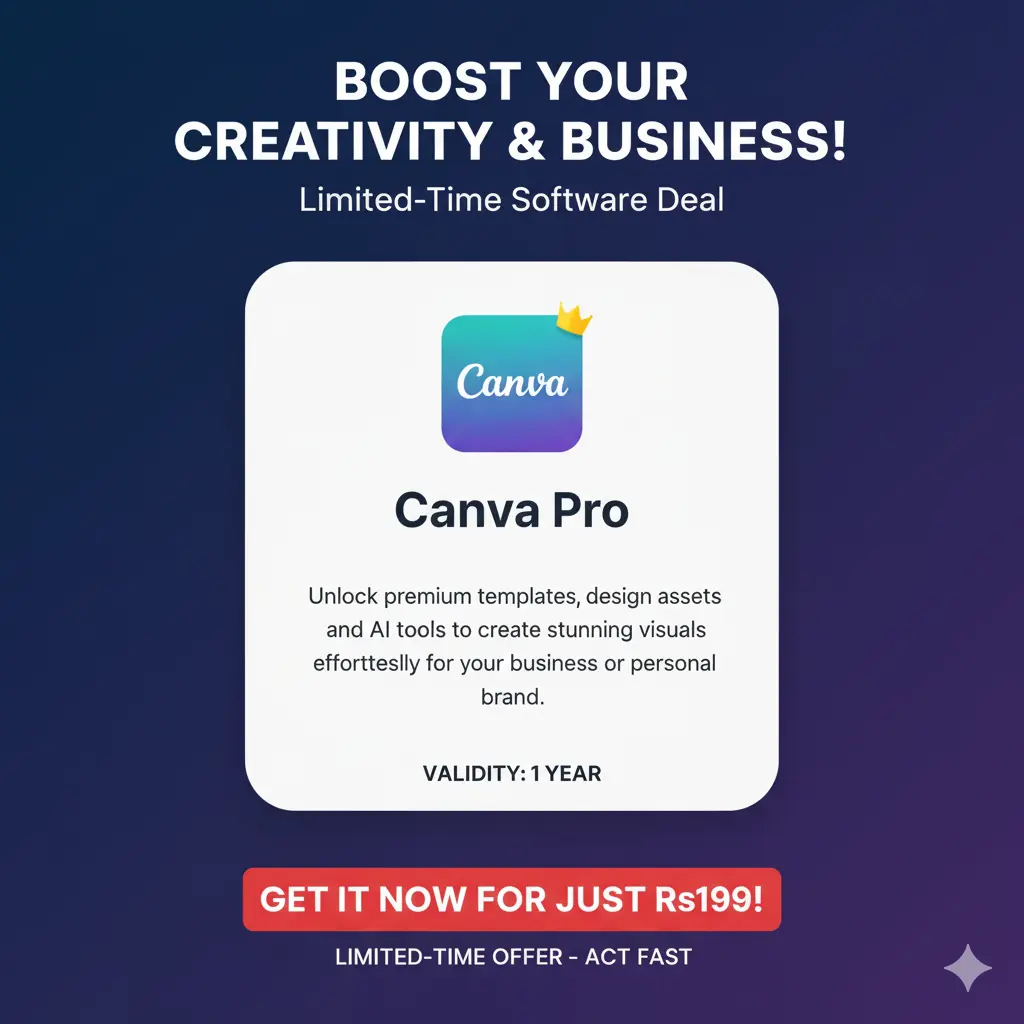 “I was tired of paying ₹500 every month for Canva. This 1-year deal is a lifesaver. The Background Remover and Magic Resize features are working perfectly. This bundle saved me over ₹5,000 instantly.”